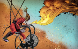The harder you pedal, the more resistance the fan pushes back at you. It’s the reason they call it Satan’s Tricycle. The fan is powered using chains similar to previous air bikes. It would be interesting to see a belt driven air bike some day like more and more bikes have, but the chains provide for a smoth ride.